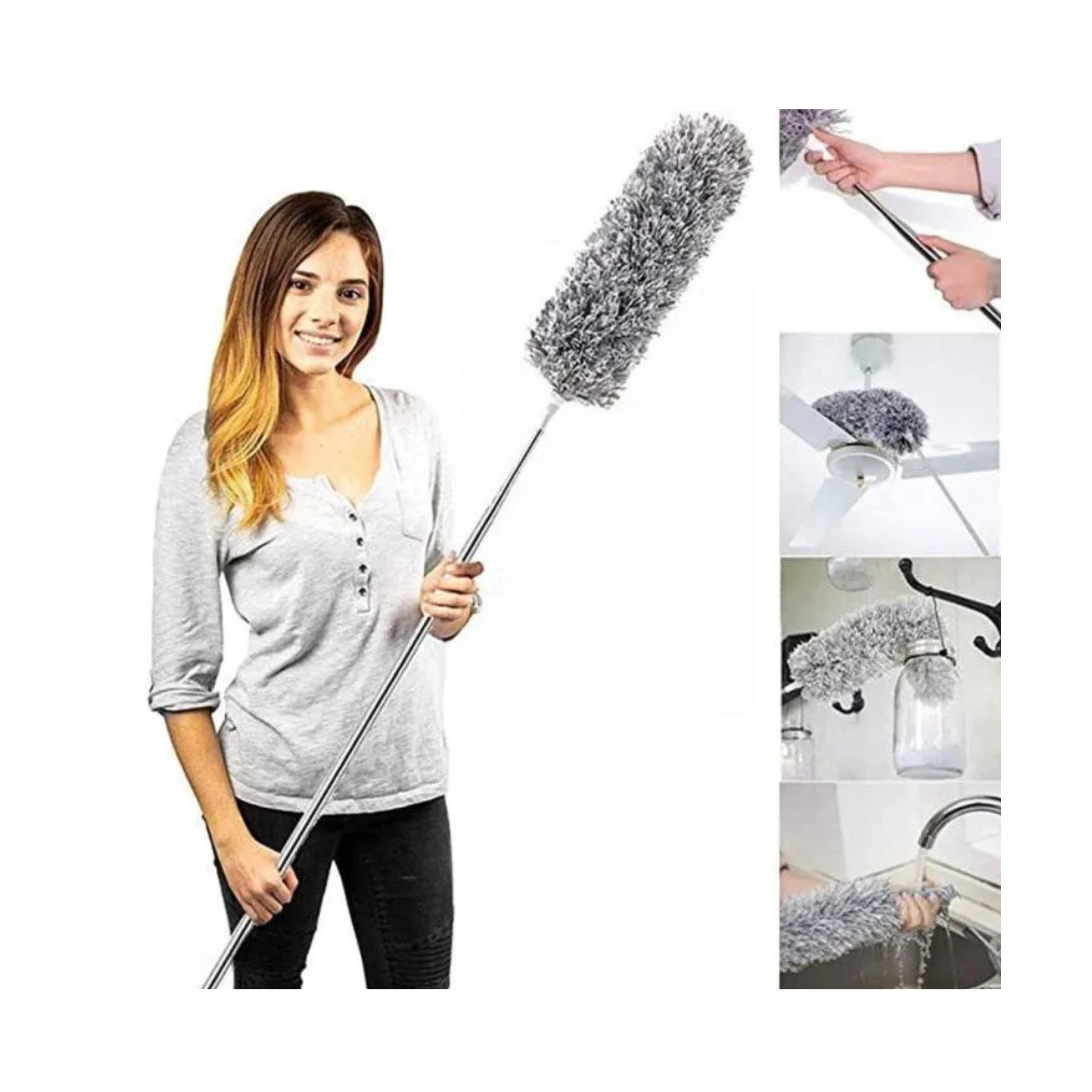 ✔ Versatile Cleaning Tool – Ideal for home, office, garages, and commercial spaces. Cleans ceiling fans, vents, cobwebs, window frames, shelves, and more!